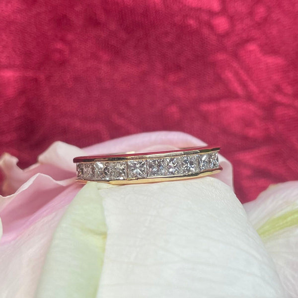 A gorgeous 14ct yellow gold ring with 10 channel-set princess-cut diamonds.