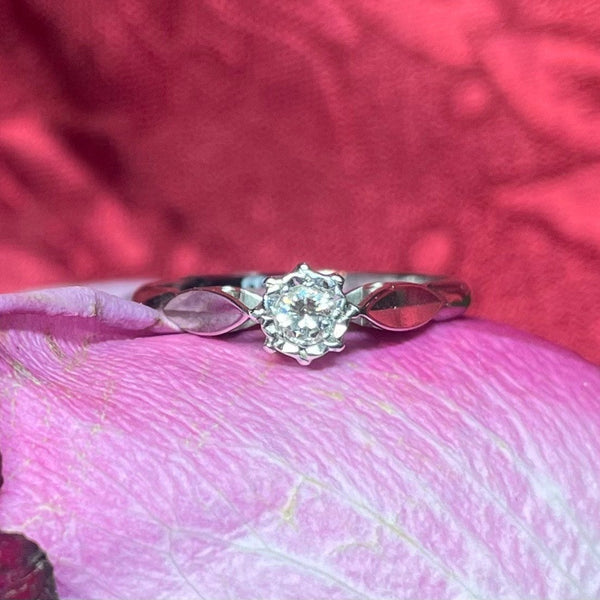 A gorgeous 18ct white gold ring with a centre diamond and tapered shoulders.