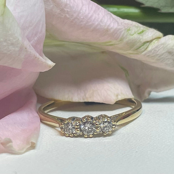 A gorgeous 18ct yellow gold ring featuring 3 claw-set diamonds.