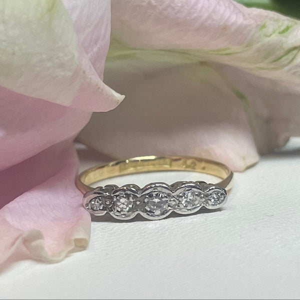 A beautiful 18ct yellow gold ring featuring 5 bezel set diamonds graduating in size.