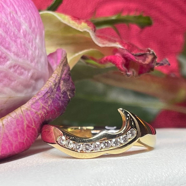 A stunning 18ct yellow gold shaped ring set with 9 round-cut diamonds.