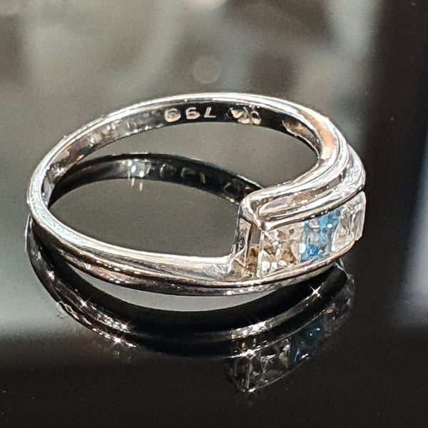 A trilogy princess cut ring set in 9 carat white gold, a great ring for day to day wear.