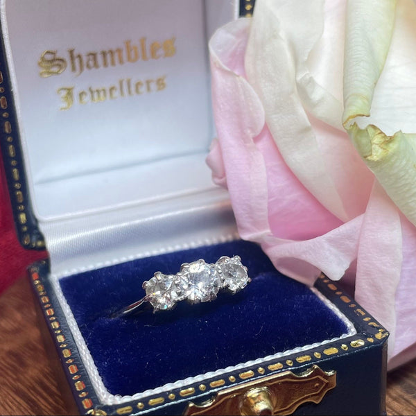 A stunning 18ct yellow gold ring with 3 diamonds claw-set in 18ct white gold.