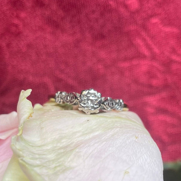A beautiful 18ct yellow gold ring featuring an illusion-set diamond set in platinum.