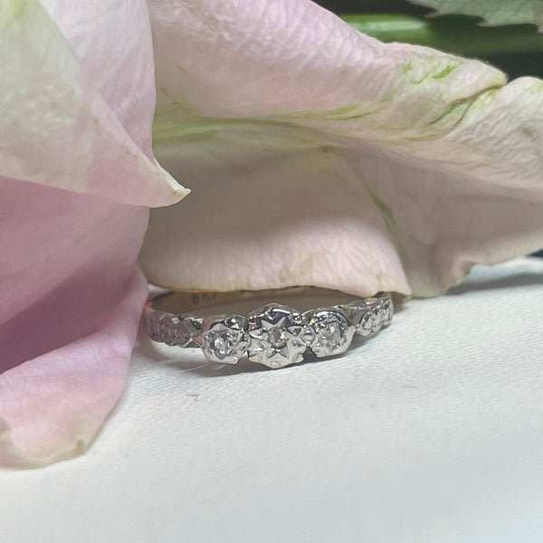 A lovely 18ct yellow gold ring with 3 illusion-set diamonds in platinum.