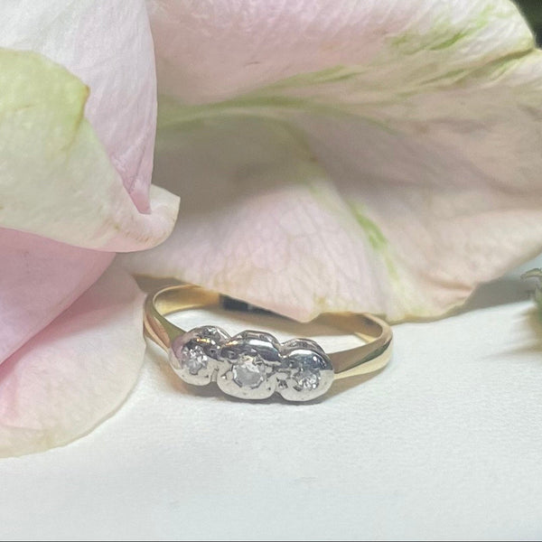 A gorgeous 18ct yellow gold ring with 3 illusion-set diamonds in platinum.